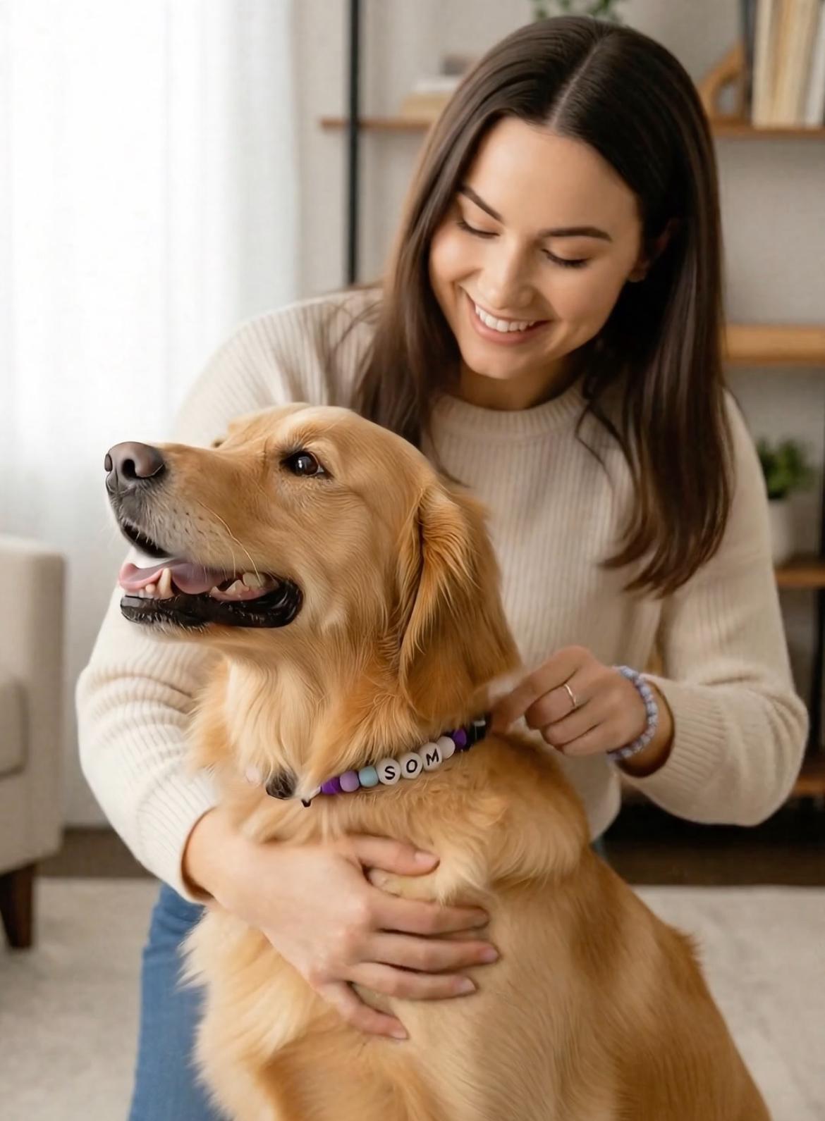 Dein pelziger Freund verdient es, aufzufallen – und jetzt kann er es, mit unseren personalisierten Namenshalsbändern. Die farbenfrohen Perlen sind nicht nur süß, sondern ein echtes Statement. Und ja – du bekommst auch ein passendes Armband, denn dein pelziger Freund ist dein bester Freund.