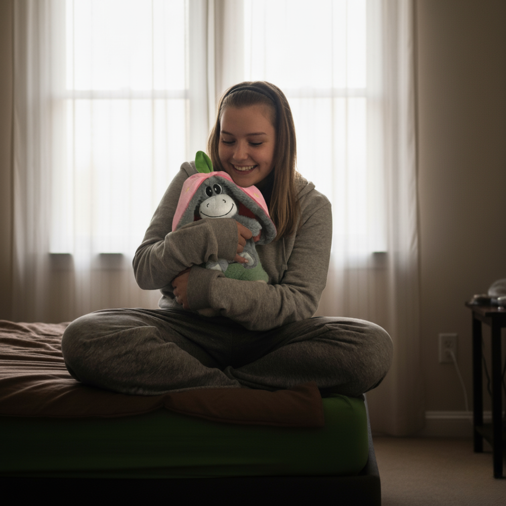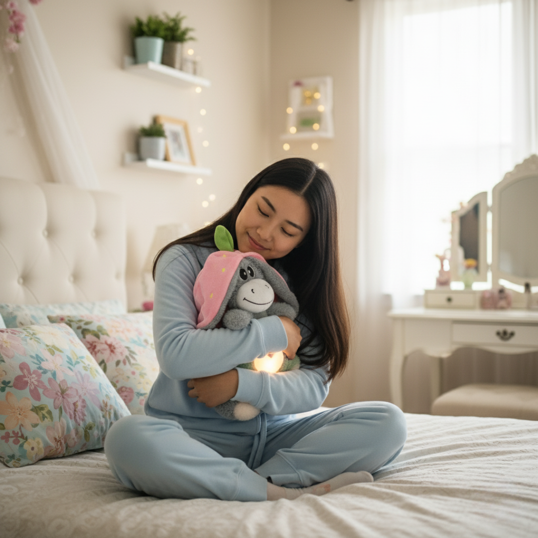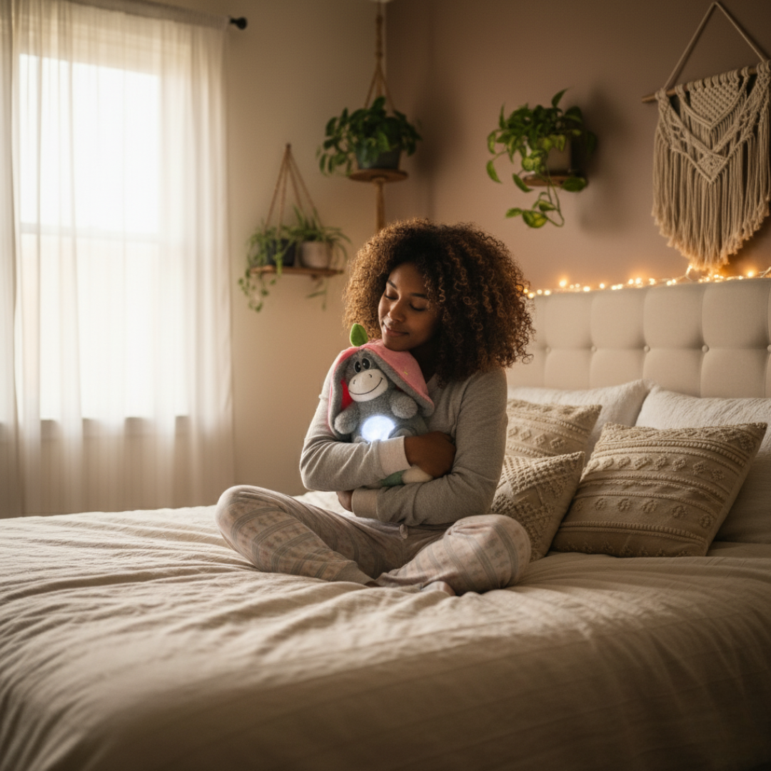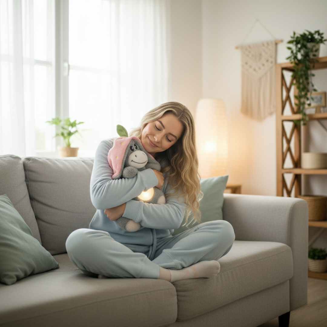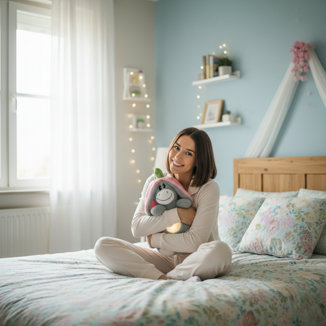 Atme tief durch. Komm zur Ruhe. Schlaf gut – mit KuschelDonkey an deiner Seite 🧸 🌙